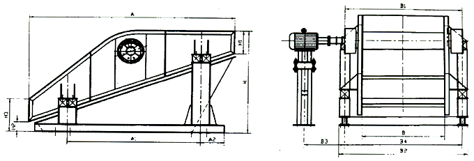 電動機安裝在篩框的左側(cè),也可安裝在篩框的右側(cè),如果無特殊要求,制造廠按物料運動方向的右側(cè)安裝供貨。